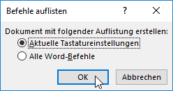Gibt es eine Möglichkeit, die Standard-Tastenkombinationen in Word sich auflisten zu lassen?